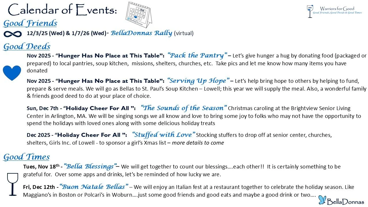 November 2025 Virtually Rally: November “Hunger has No Place at this Table” - 11/05/25: Rally Series “Bond Through Sharing” – With Thanksgiving just a few weeks away, we shared recipes, traditions and tips to give each other some new ideas to make our wonderful day special. We shared quite a few laughs, celebrated our successes and talked about the exciting upcoming events.